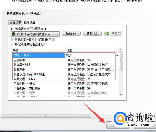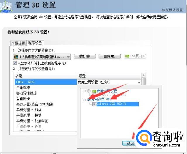 打开之后在第一个全部选项处用鼠标点击,就会出现一个选项栏。在下面选择“使用这些CPU”然后把下面的显卡选上。设置好之后点击下面的确定。