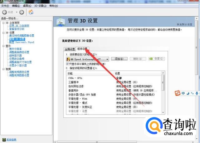 打开之后点击软件页面右侧程序设置,耐心等待几秒钟就会出现当前的3D设置