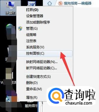 首先鼠标右键点击电脑桌面的计算机选项,在出现的栏目点击进入“控制面板”