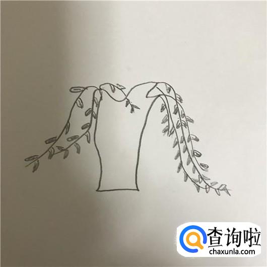 画柳树的树叶,在画树叶的时候可以画的随意些,毕竟现实生活中每片叶子长的都不一样,见下图