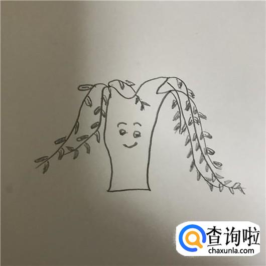 为了增加柳树的可爱型,可以在柳树的树干上画个笑脸,见下图