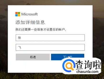 然后在这里添加详细信息,输入姓和名。完成之后点击下一步。