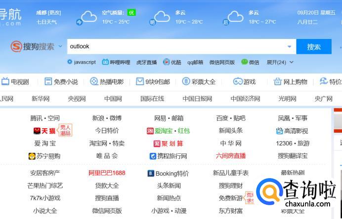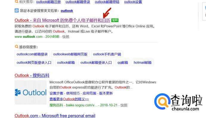 首先打开搜狗引擎,在搜索栏输入“outlook”,点击回车键。