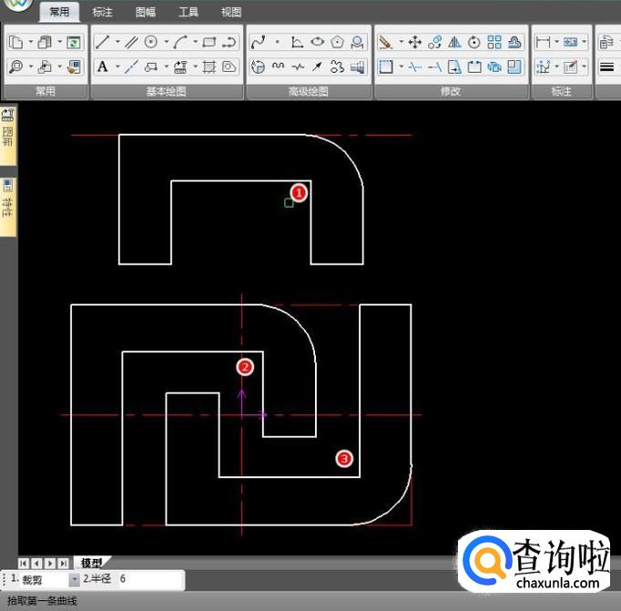 再给其他三个地方,倒半径6的角,然后隐藏中心线层,最终效果如图;