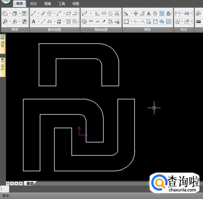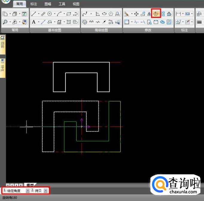 使用旋转命令,将下方绘制好的图形,以坐标原点为基点,旋转180°,小米有品logo的雏形就出来;