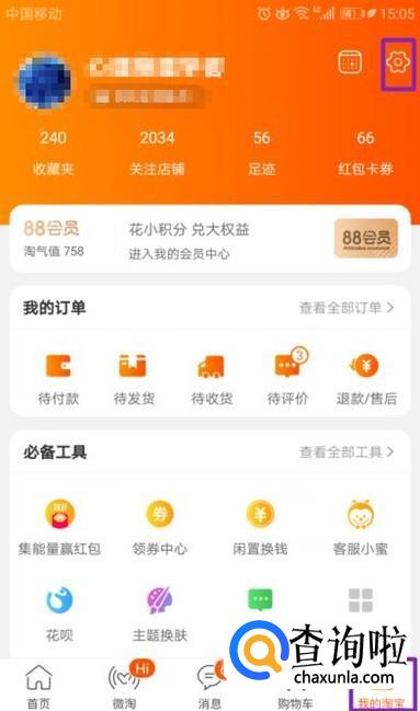 首先,我们打开我们手机上的手机淘宝,然后我们点击我的淘宝,之后我们点击设置;