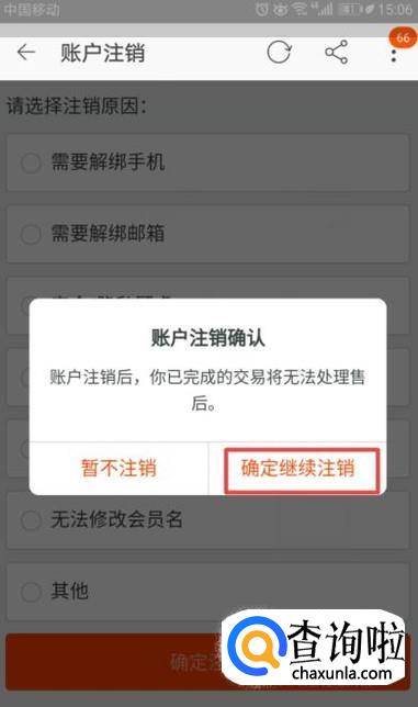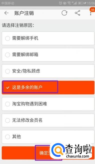 然后我们选择一个原因,之后我们点击确定注销就可以了。这样我们就注销了我们的淘宝账户了。