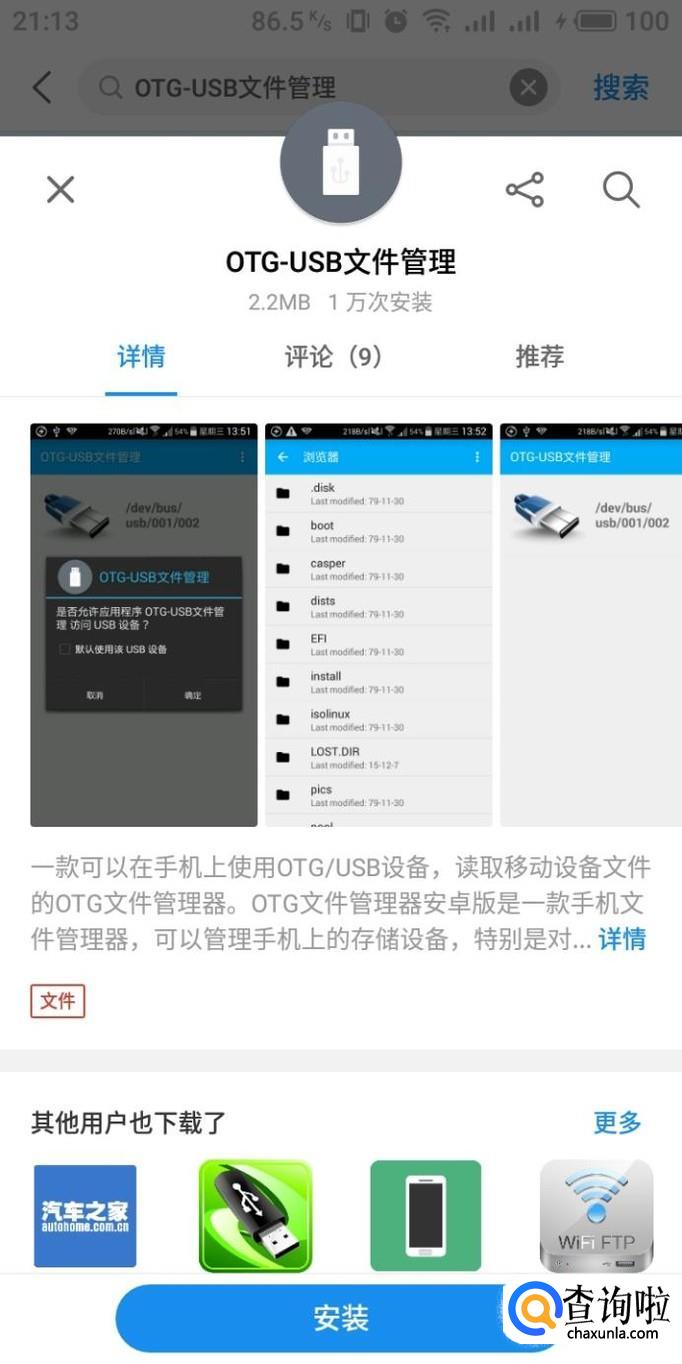 最后打开手机,在应用商店下载一个“OTG-USB文件管理”,打开之后识别手柄驱动,安装完成之后即可使用了。