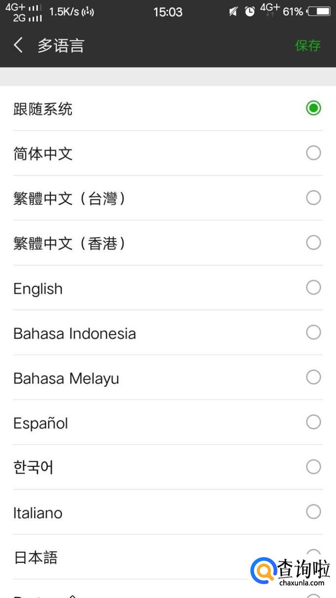 最后我们选择点击多语言,再点击自己要更换的语言,点击保存即可。