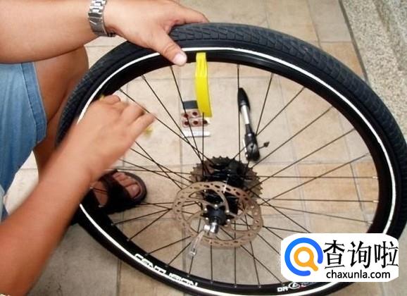 最后把内胎放在别劝里,安好外胎,上好气门,然后打气,再检查看看还漏不漏气,这样自行车胎就补好了。