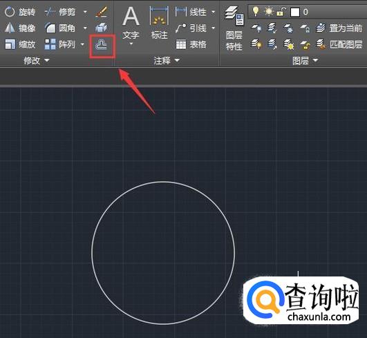 选择圆形在绘图区里绘制一个圆形,然后在修改菜单里找到偏移选项,如图所示: