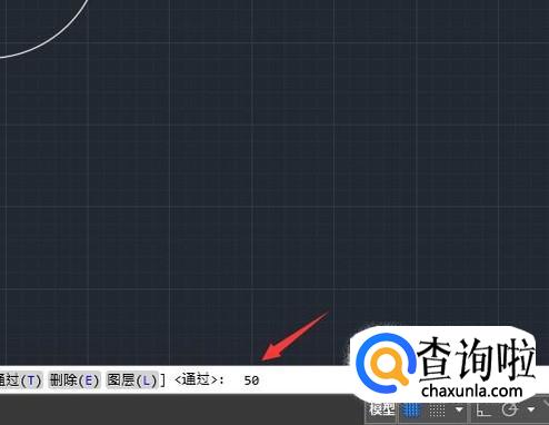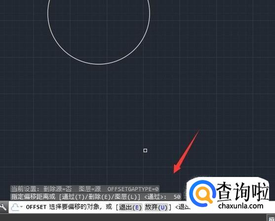 点击偏移选项我们在下面的命令行内输入我们的偏移距离为50,如图所示: