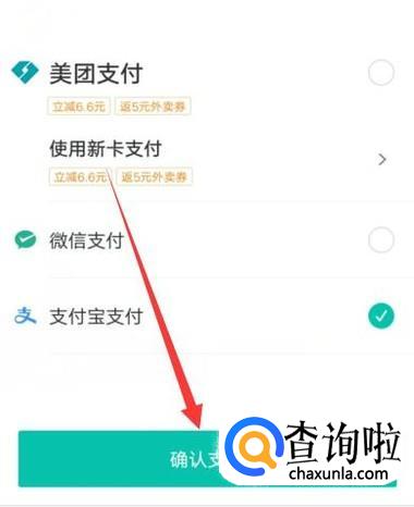 进入之后,勾选支付宝,点击“确认支付”,如图所示。