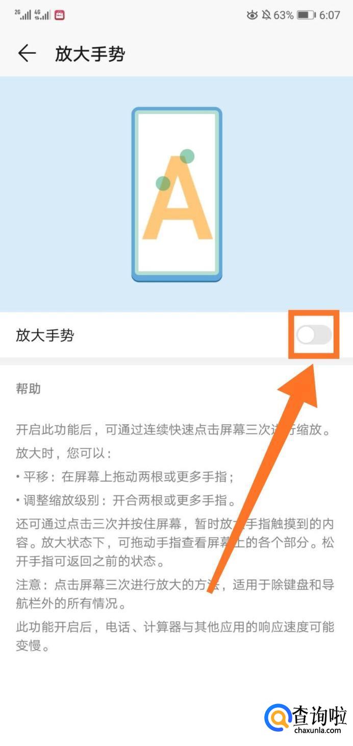 我们点击放大手势右边的开关按钮。