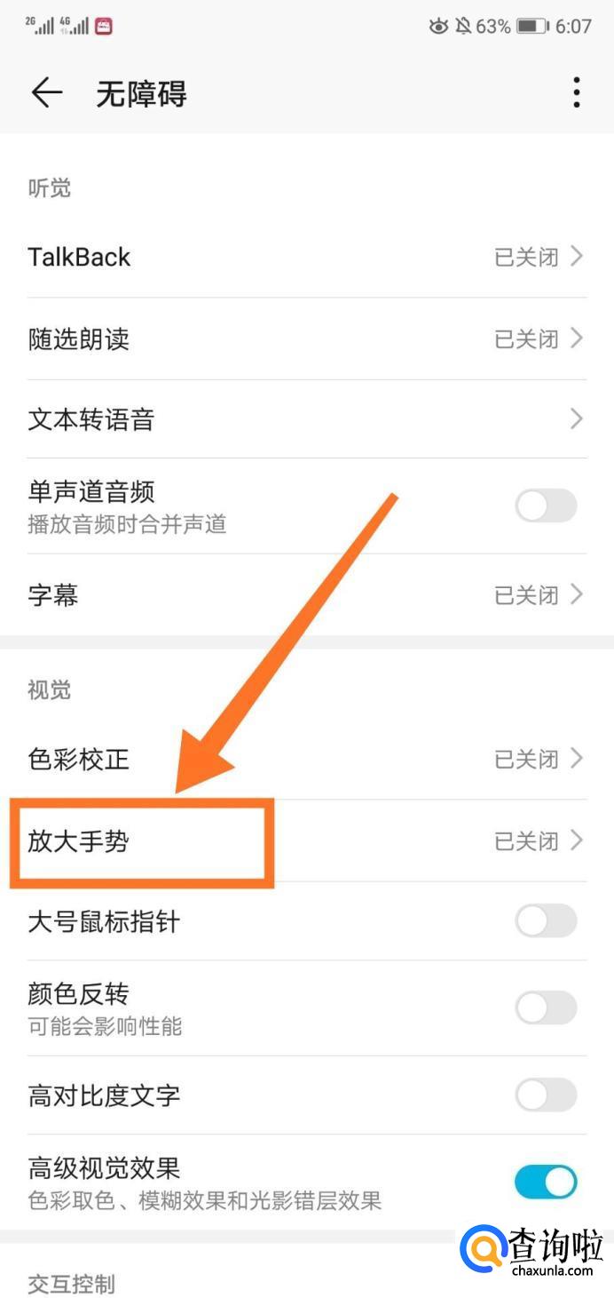 然后我们点击【放大手势】。