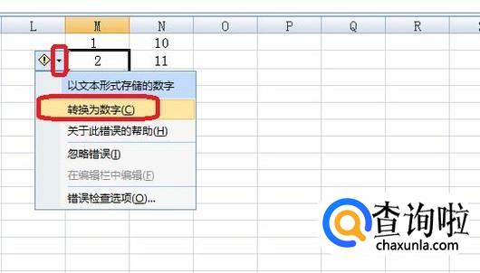 点击该图标右边的下拉菜单箭头,菜单中选择“转换为数字”。
