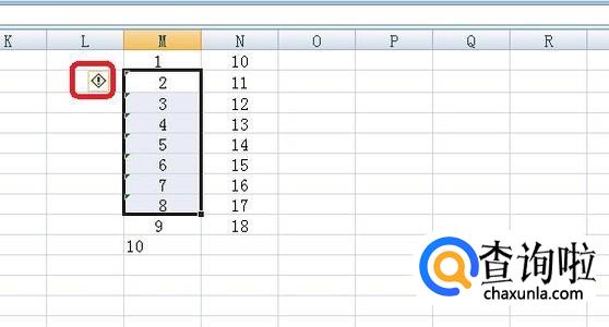 这样的情况,肯定是数据有问题了。我们观察一下,发现其中一些单元格左侧有绿色的斜三角符号,我们把它们都选中之后,出现图中红色标记的图标。