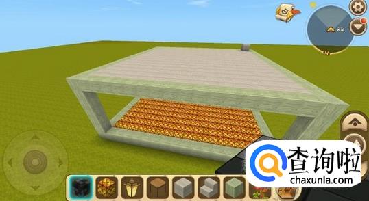 首先用你喜欢的方块搭建一个房屋基底,图中设置的规格是18X18,在四周和图形转角处打好第一层柱子,起承重作用。