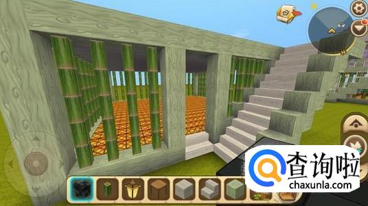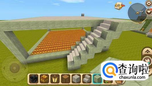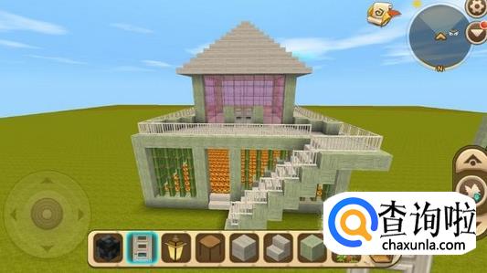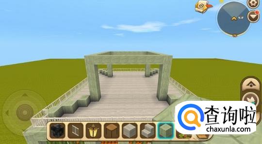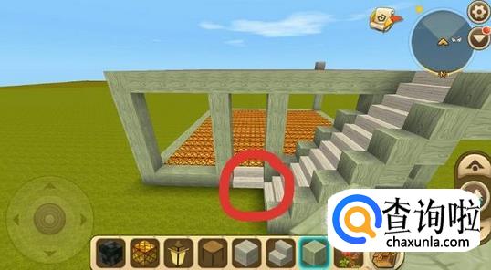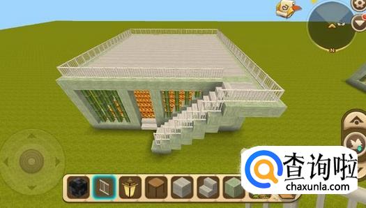 在一楼门口放置一个像二楼的楼梯,尽量选择和小别墅框架一样的方块,这样看起来比较好看。