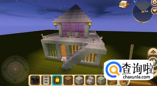 可以选择自己喜欢的地板和屋顶材料,把一楼地板和屋顶都填充起来,可以用玻璃块做一些装饰。