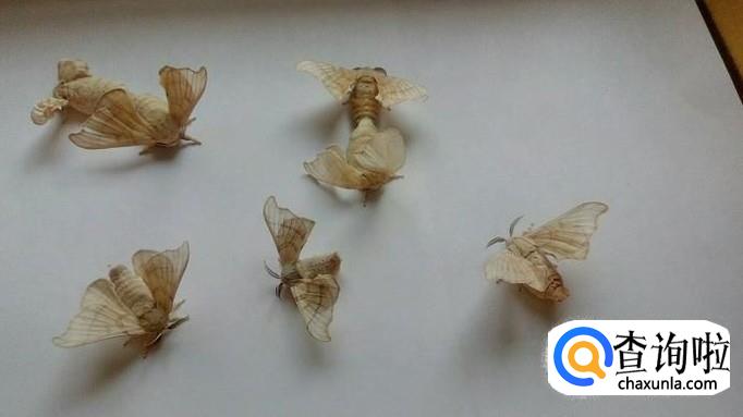 挑选好留的蚕茧单放一个盒子里,在感觉快要变蛾前拿到盒盖上,这个过程大约是做茧后半个月的时间,底下铺白纸,等待蛾子出来。