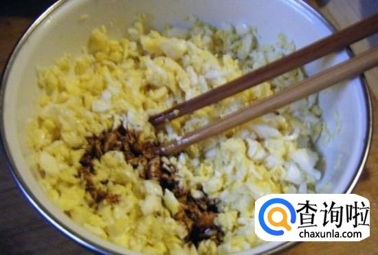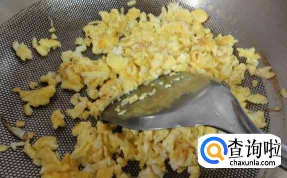 热锅起油,放鸡蛋进去翻炒1分钟左右,然后用锅铲把鸡蛋切成碎丁,铲上碗里,加自己喜欢的调料搅拌一下。