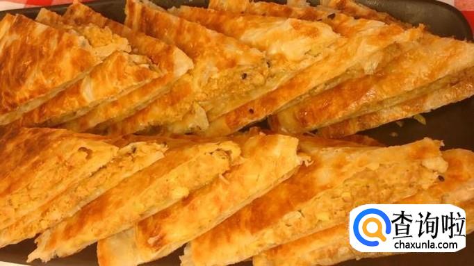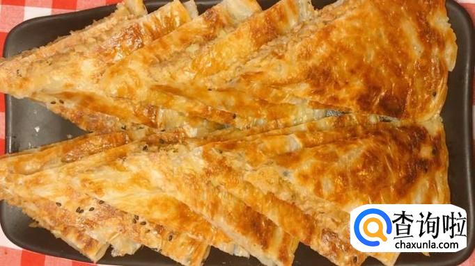 出锅后,将手抓饼切成小块装盘,香酥肉饼就完成了!