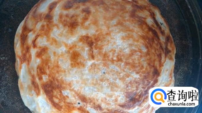 在平底锅中加入少许油,油热后将手抓饼放入锅中,小火煎制6分钟,直至两面金黄。