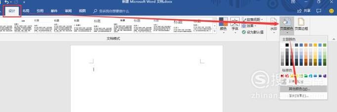 点击菜单栏中的“设计”,“页面颜色”,“其他颜色”。