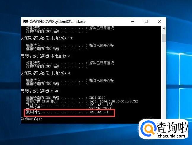 之后我们就看到我们电脑的默认网关了,如图所示。