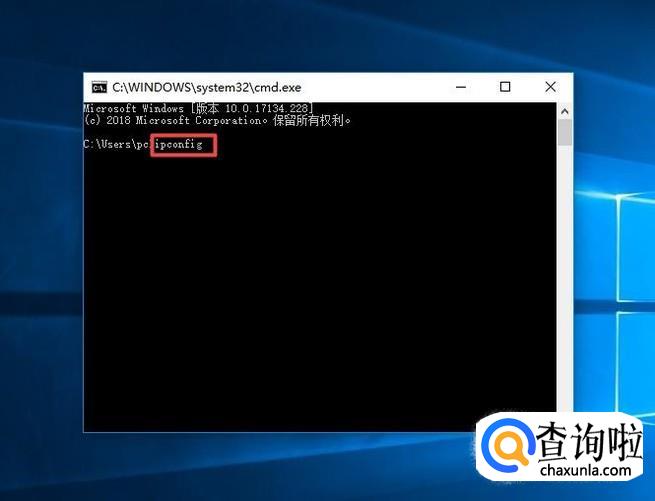 弹出的界面,我们输入ipconfig,之后我们点击回车键;