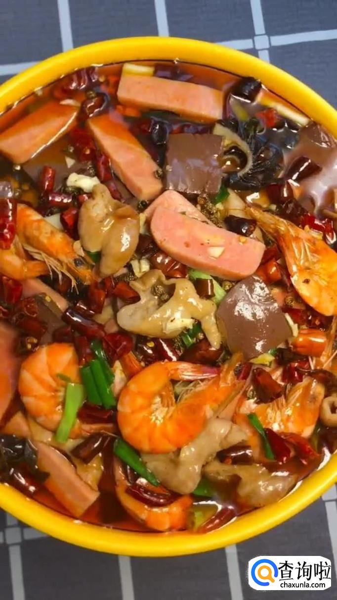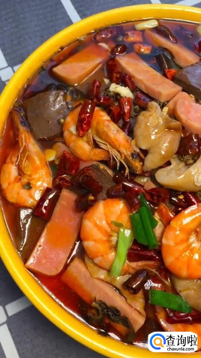 食材:黑百叶、肥肠、鸭血、香肠、金针菇、木耳、小白菜、豆芽、虾、豆瓣酱、火锅底料、清水、葱姜蒜。