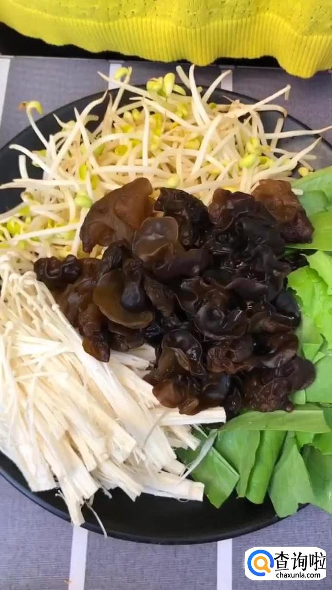 接着把我们想要吃的金针菇,豆芽,小白菜和木耳处理好洗净,等到锅中水烧开,倒入锅中煮三分钟,如下图所示。小贴士:如果你喜欢吃的素菜,有些容易烂而有些不容易烂 ,小编建议大家先把不容易烂的素菜倒入锅中煮,之后再把容易烂的素菜倒入锅中煮,这样做能够避免素菜有些过于烂而有些却没煮熟的情况发生。