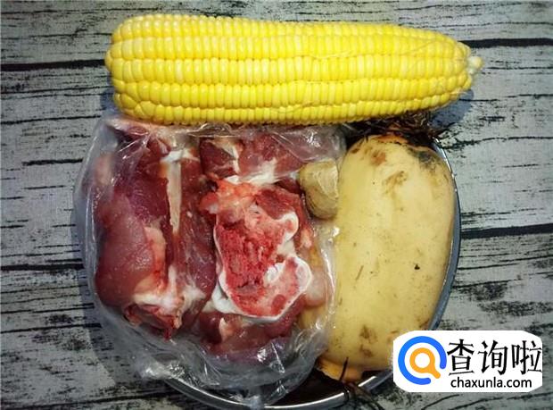 玉米、莲藕、筒骨、姜、蒜、盐、花生油、酱油