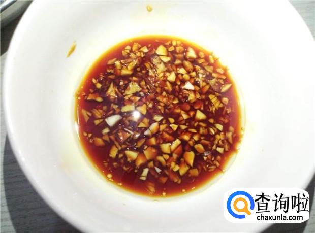 最后,准备一下酱料,姜蒜剁碎,加入适量的花生油、酱油、盐,调制沾筒骨吃的酱料。