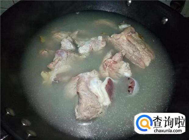 水煮开后,倒入清洗过的筒骨,大概烫3分钟,捞起来。