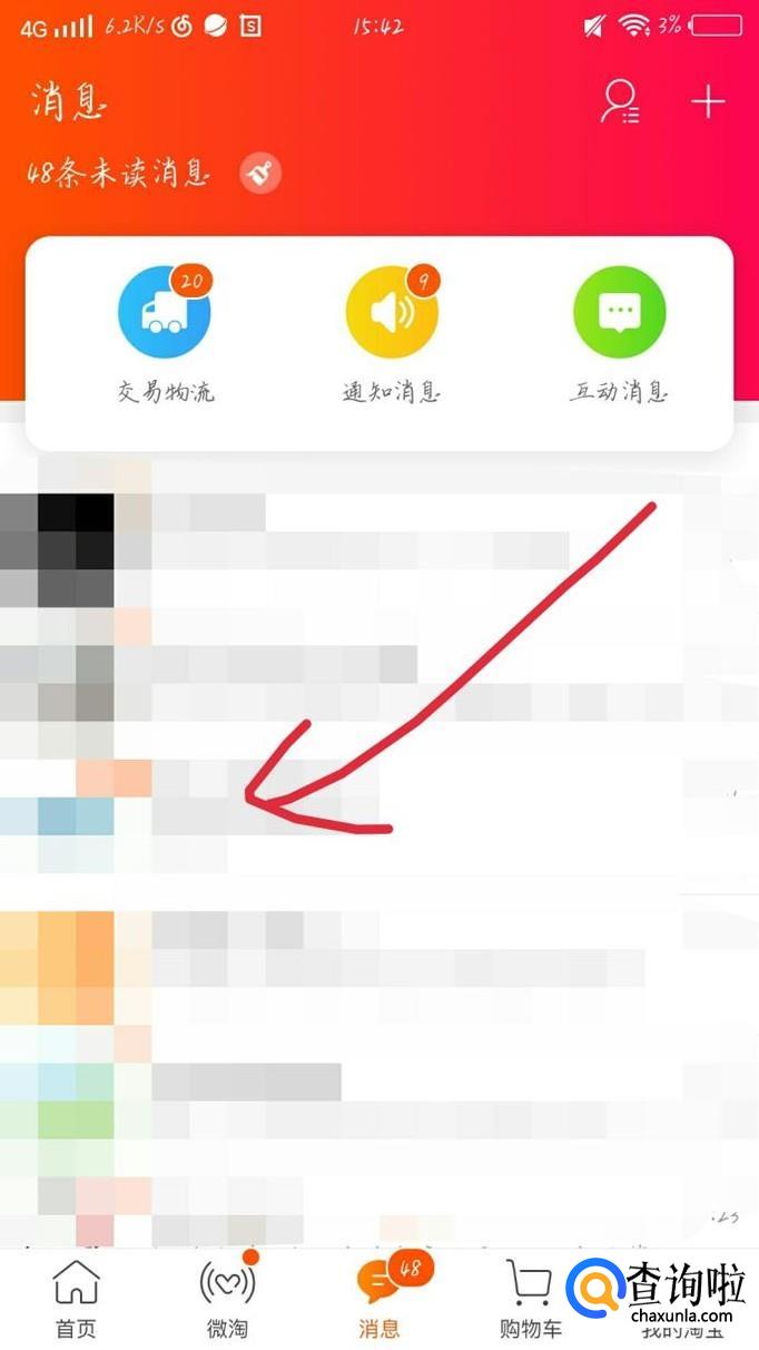 点击最下方的“消息”选项,如图1箭头所示。你会看到出现一个新的界面,如图2所示。