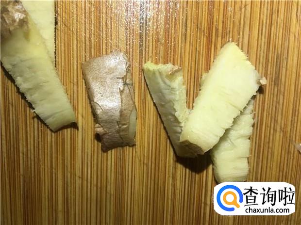 老姜切片,备用;