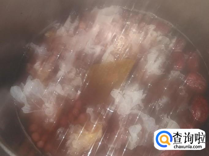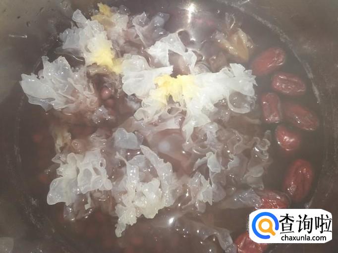 放雪耳进去,盖上盖子再炖10分钟。