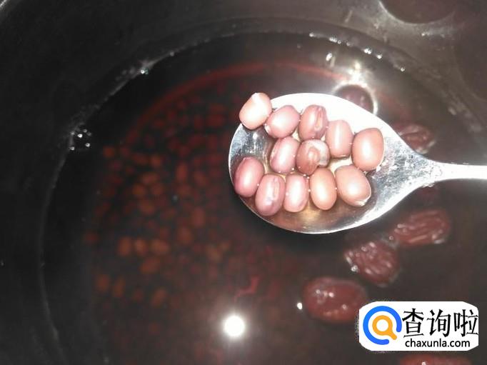 煮到红豆有些爆裂后。