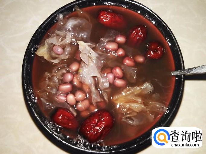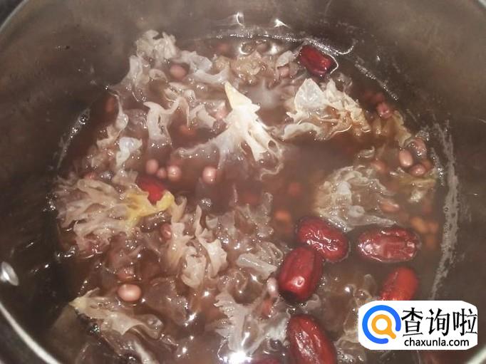 红豆70克,雪耳20克,红枣30克,土红糖适量。