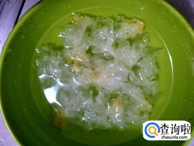 雪耳泡水撕成小片。