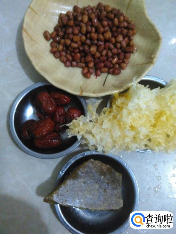红豆、雪耳、红枣、红糖准备好。