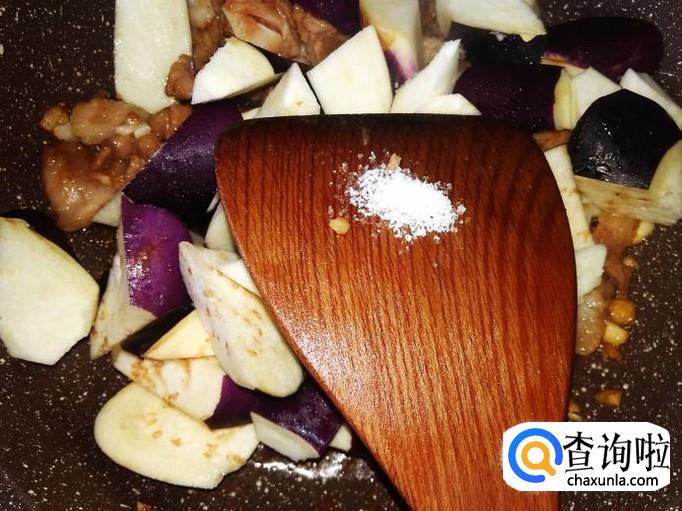 翻炒炸煎出油,再放茄瓜进去,加适量的盐。