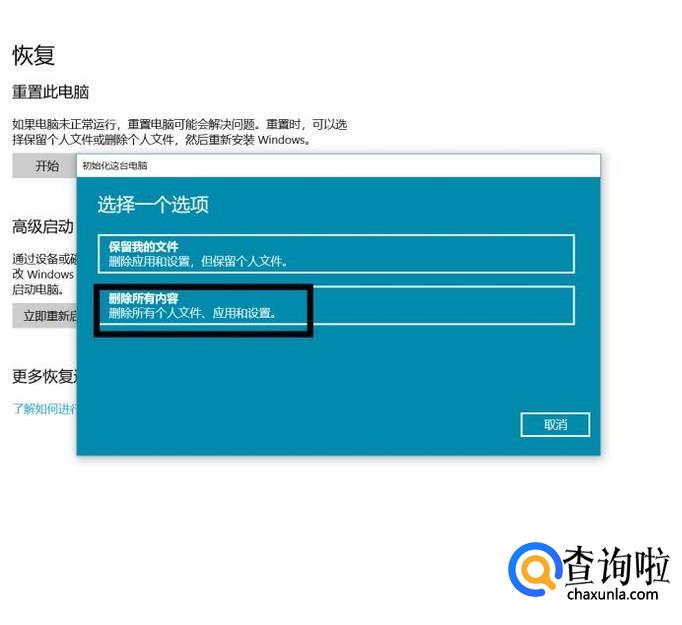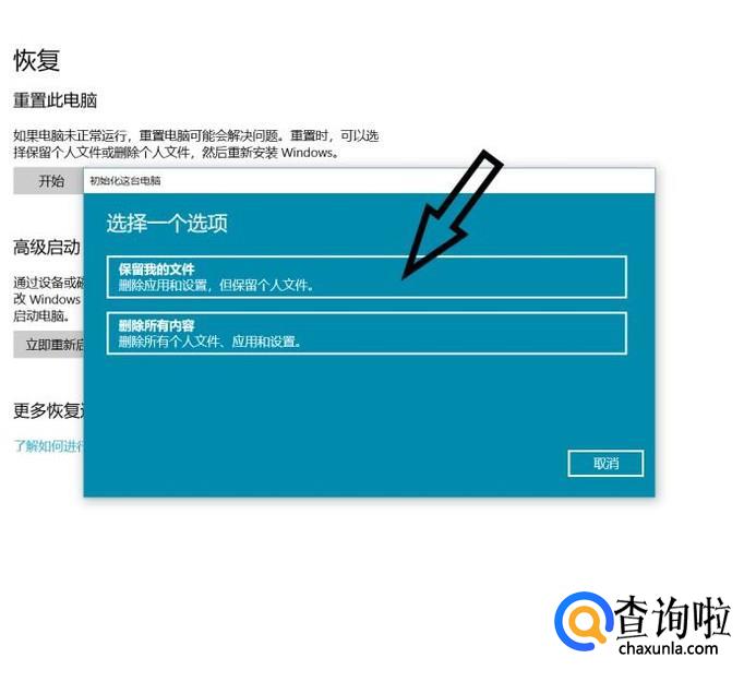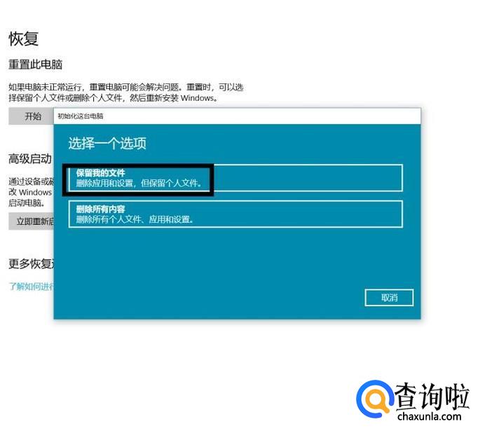 第一个选项里所说的“文件”指的是 C:users 里的文件,对 C盘之外的分区没有影响,这个选项不是非常彻底,最明显的特征就是恢复完和原来相比没什么差别。