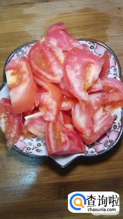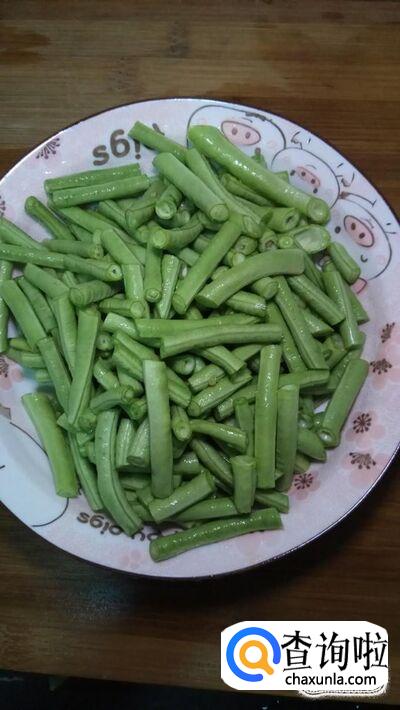 准备适量豆角,洗净后切成段,再准备,适量西红柿,洗净后切成块备用。