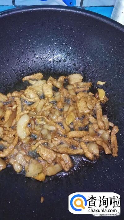锅中放入适量油,将腌好的肉放入锅中炒熟。