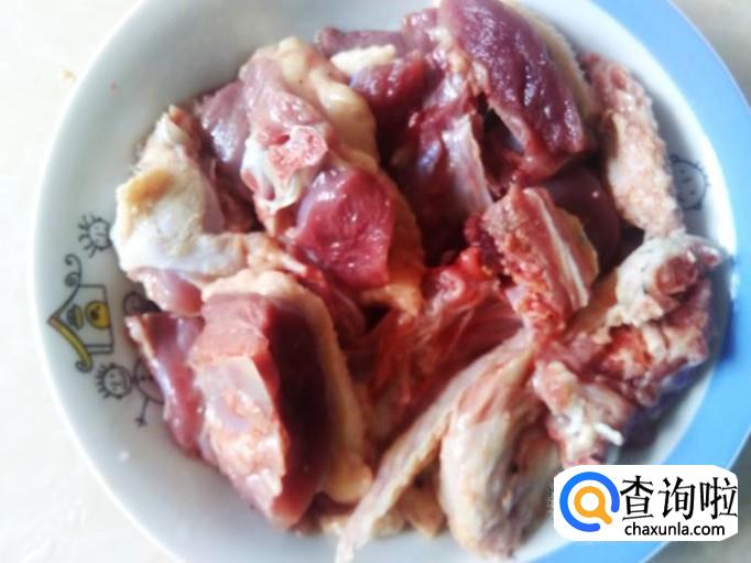 首先把鸭肉清洗干净,然后斩成一块块。