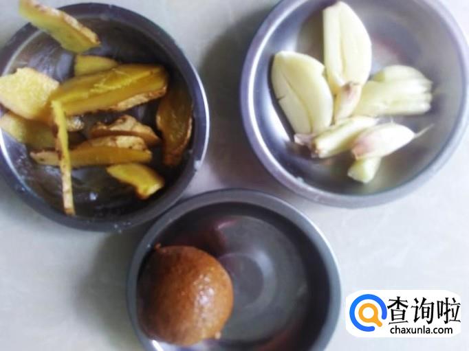 姜片、蒜米、柠檬准备好。