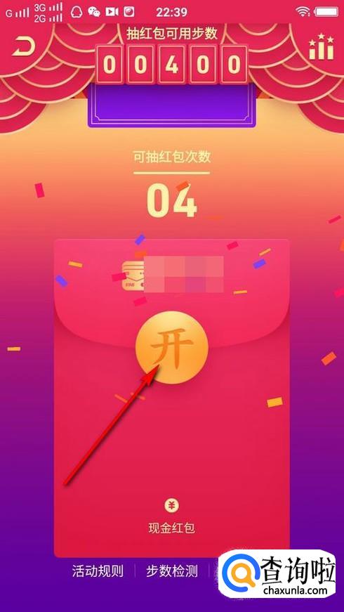 如果抽中了,就会弹出一个红包,点击红包中间的【开】字。